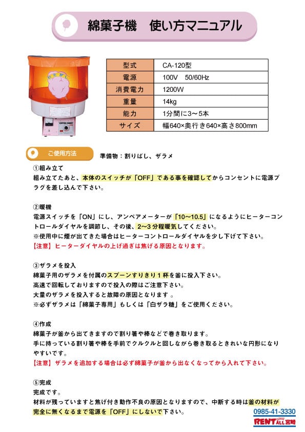綿菓子機 使い方マニュアル