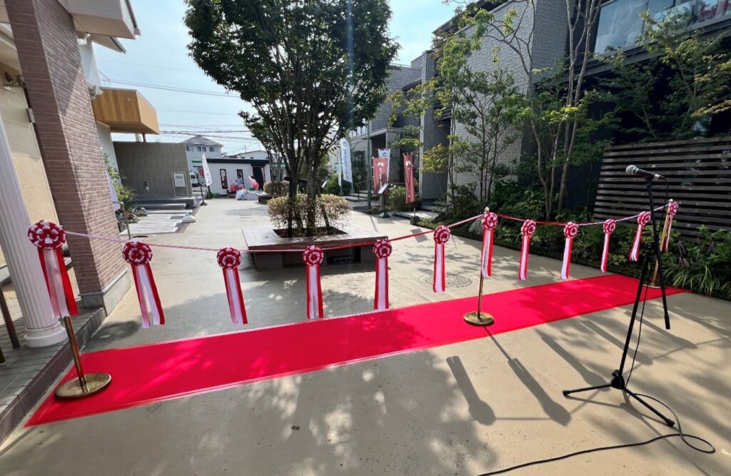 ハウスメーカー様の創立10周年を記念し、店舗前に約4〜6張のテントを設営したうえ、宮崎牛もふるまわれたイベントです。そのスタートを飾るセレモニーとして、テープカット用品一式をご利用いただきました。