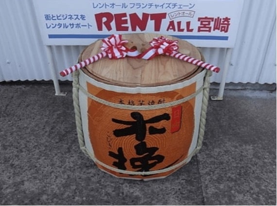 お祝いの場にふさわしい鏡開き用樽もレンタル可能。取り扱いが少ないアイテムながら、レントオール宮崎ではレンタルの際に配送回収も行っています。式典や記念パーティーをより印象的に演出します。
