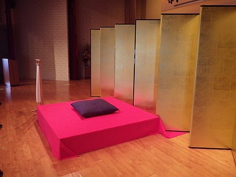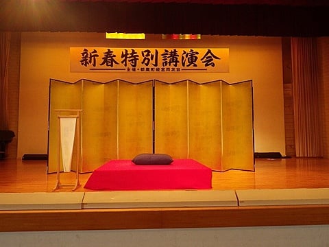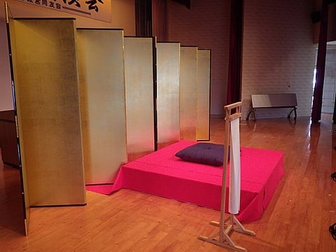高さ7尺(約210cm)の金屏風は、その存在感で空間の質を飛躍的に向上させます。めくり台(演目題用)や高座用座布団など、落語イベントに必要なアイテムも合わせてレンタル可能ですので、必要なものを一度に手配できます。