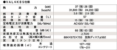 | 備考 | ※灯油と電源が必要です。 ※灯油はご準備お願いします。 |