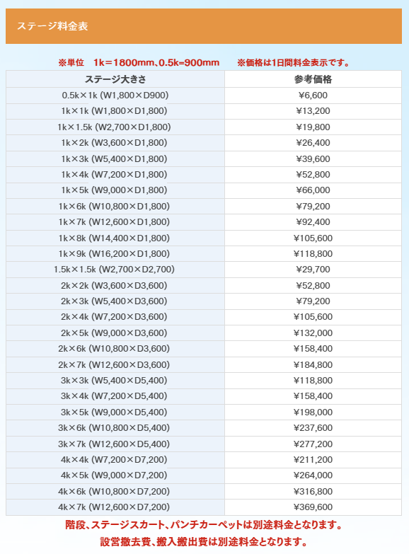 階段、ステージスカート、パンチカーペット別途