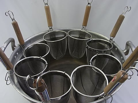 お祭りやイベント、模擬店で本格的なうどんを提供する際に欠かせない「うどん用てぼ」のレンタルサービスです。一度に複数人分のうどんを茹でることができ、効率的な調理をサポートします。熱いお湯の中でも安全かつ衛生的に麺を茹で上げ、スムーズな提供を実現します。