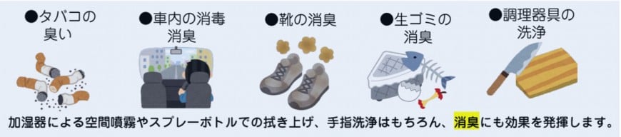 また、加湿器でご利用いただくと、空間除菌も行っていただけます。